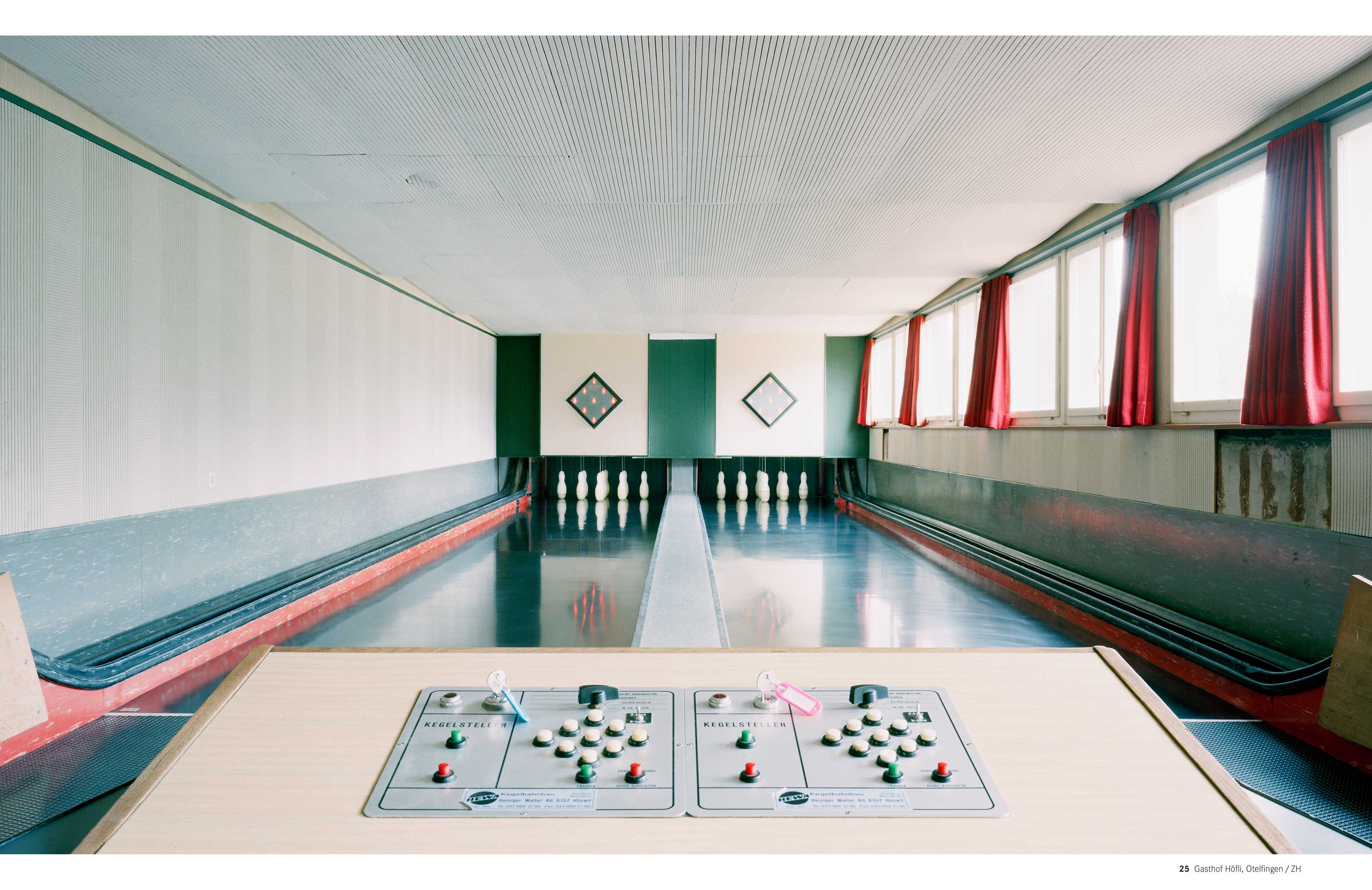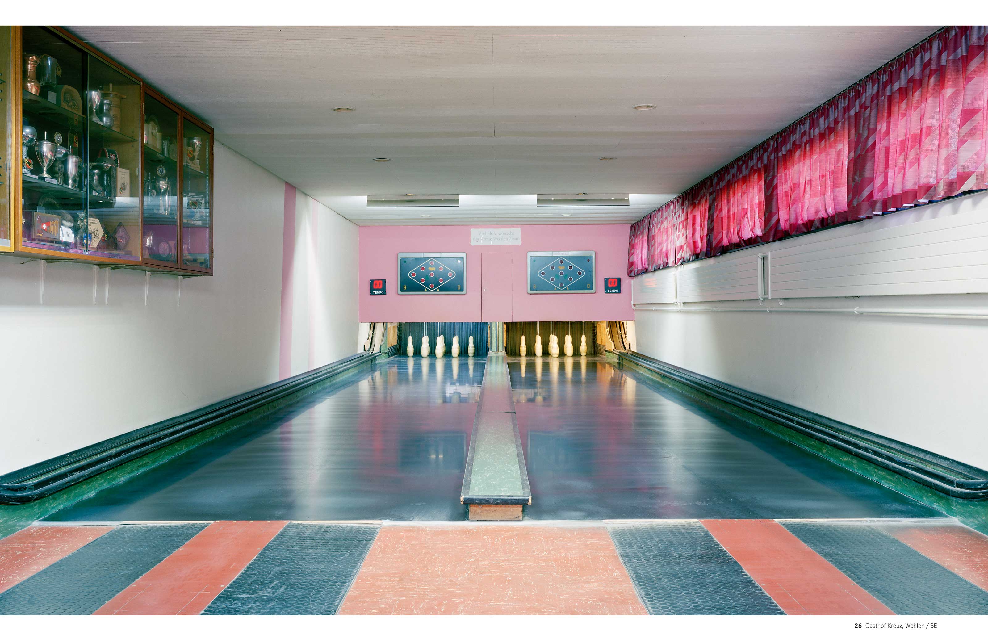 Judith Rüegger and Pol designed the publication in which, Fabienne Eggelhöfer and Monica Lutz present an aesthetic selection of bowling alleys in Switzerland, photographed by Rolf Siegenthaler.