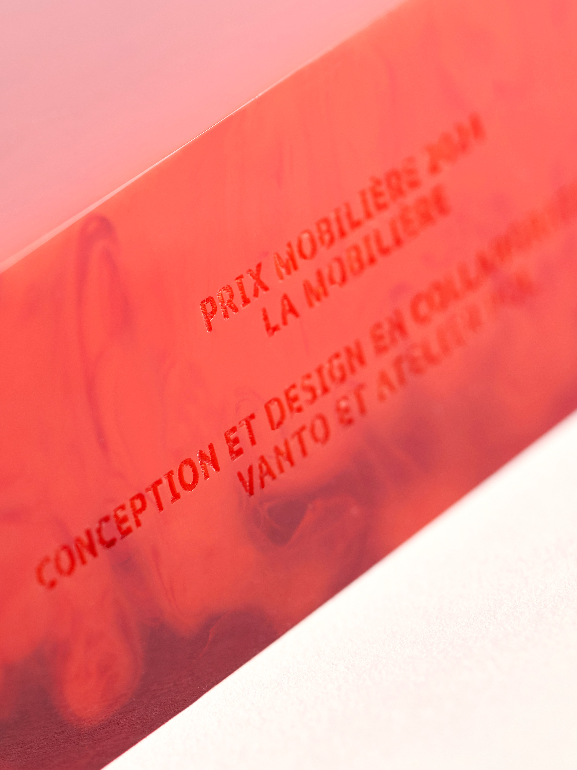 In addition to the new logotype and in close collaboration with Veronica Antonucci (Vanto) and Nils Sandmeier, we developed the concept for a physical trophy for the Prix Mobilière. Their thorough understanding of material transparency helped in creating a one-of-a-kind design with visible inclusions of various shapes inside the geometric form.